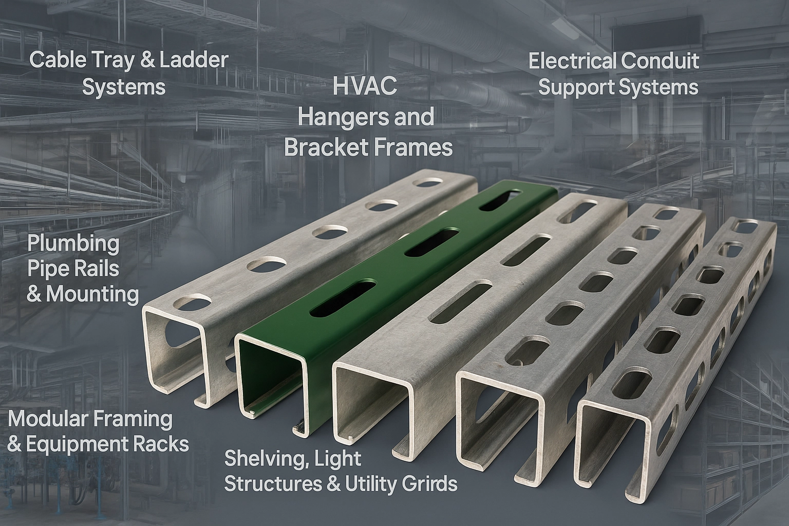 At Arabian Star, we supply high-strength slotted channels engineered for superior load-bearing, corrosion resistance, and installation flexibility. Our support channels are used widely in commercial, industrial, and public infrastructure projects — offering trusted performance for cable trays, electrical conduit mounting, pipe supports, and structural framing systems.